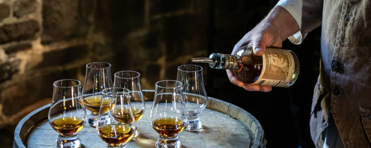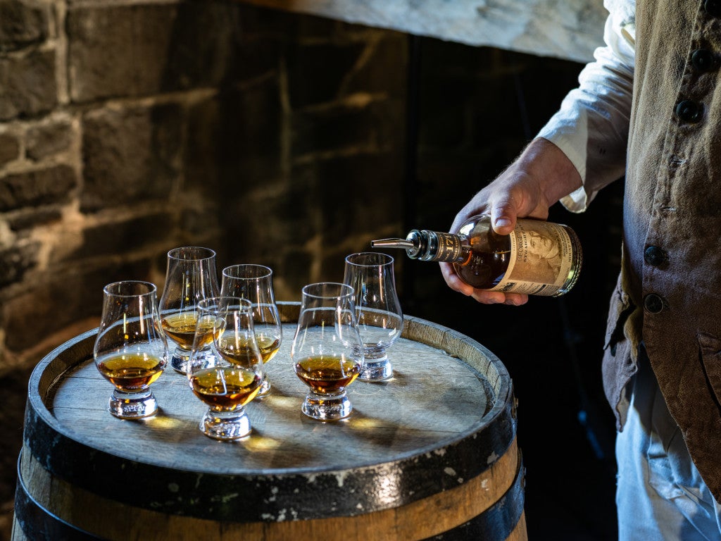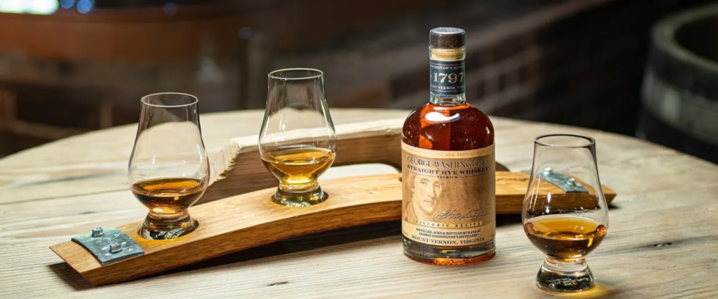 Sample George Washington's whiskey and other distilled spirits made at Washington's Distillery.