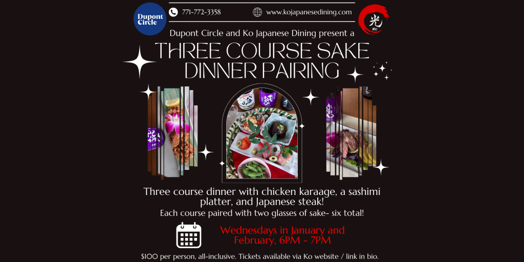 Experience Japanese dinner and sake like never before in the heart of Dupont Circle, DC, at Ko Japanese Dining. We take pride in serving authentic Japanese cuisine that highlights traditional flavors and techniques. This exclusive event invites you to indulge in three different courses featuring the best that Ko has to offer, each paired with two cups of unique chef-selected Japanese sakes. Our highly trained and knowledgeable staff will guide you through this culinary journey, explaining the significance of each pairing while you enjoy unparalleled authenticity and value in traditional Japanese delicacies.