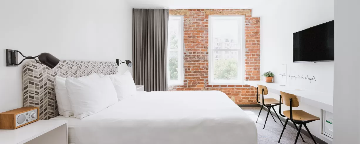 Mixing smart technology with the unexpected. This hotel unites modern innovation with historic character. Their distinctive 125-250 square foot rooms are perfectly unique hives for the on-the-go guests looking to truly connect with the city. Their prime location means access to buzz about the city and then return to a restful and thoughtful hotel experience.