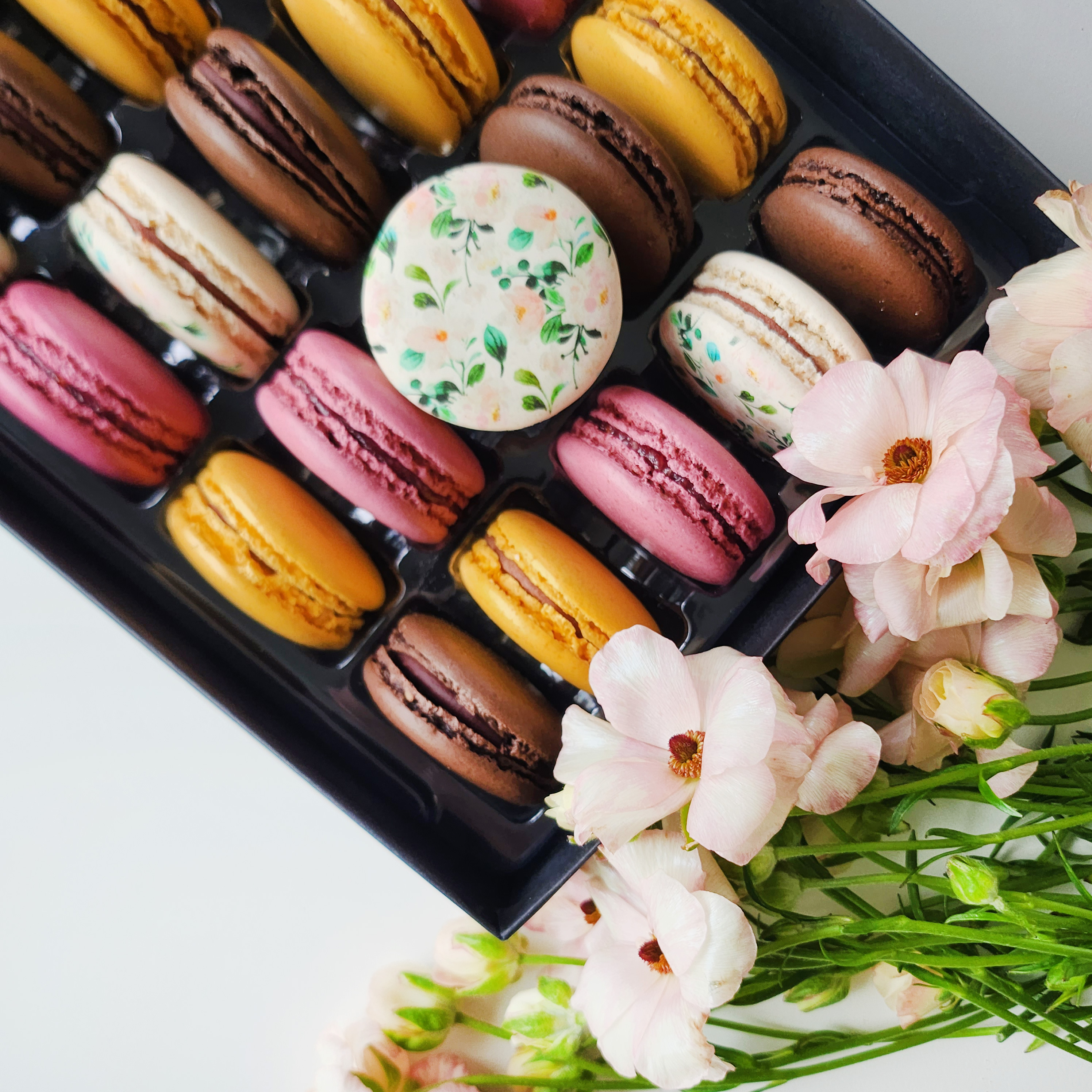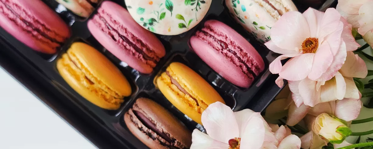 Olivia Macaron makes custom macarons for events, gifts, and celebrations. Personalize your macarons for your event with food-safe printing options that allow you to include your logo or special message on the macarons.