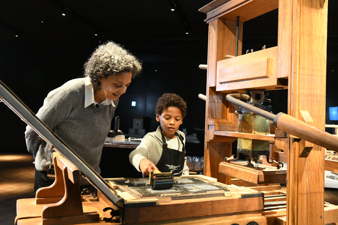 In the Folger's exhibition galleries, visitors of all ages can get up close and interact with the incredible books, manuscripts, art and objects that make up the world’s largest Shakespeare collection. Make your own Shakespeare scene, set type for printing, become a First Folio detective, fold paper to make books and more.